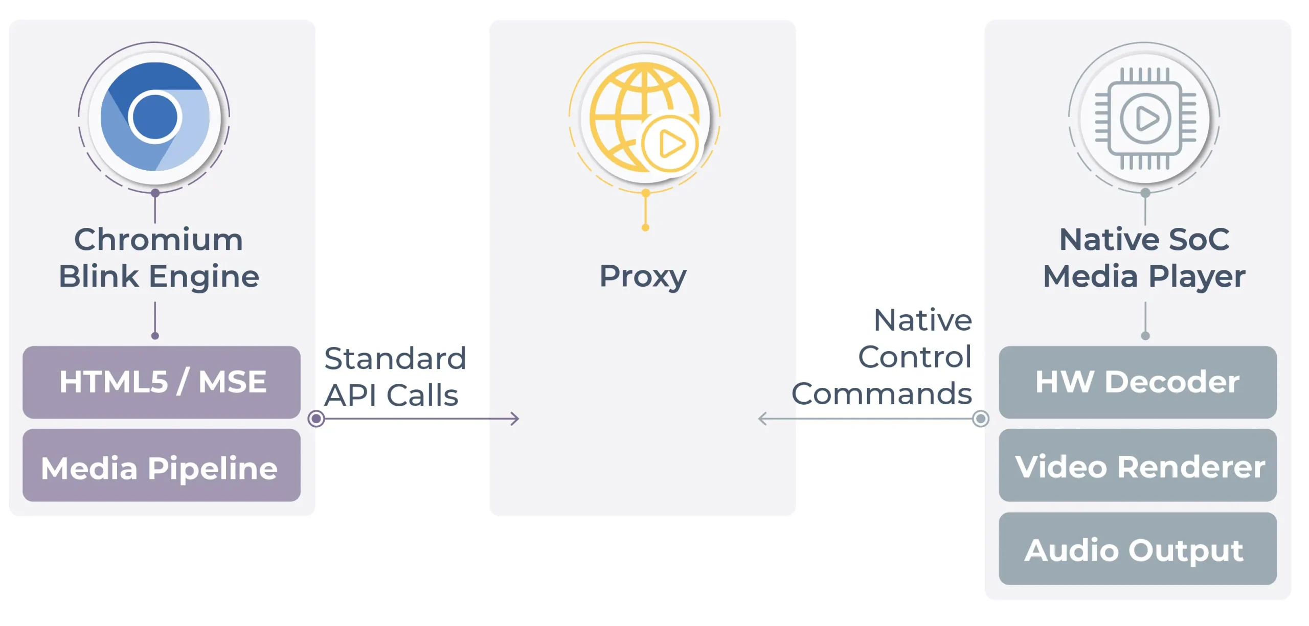 Proxy Layer: Positioned between the Blink engine and the native SoC media player
