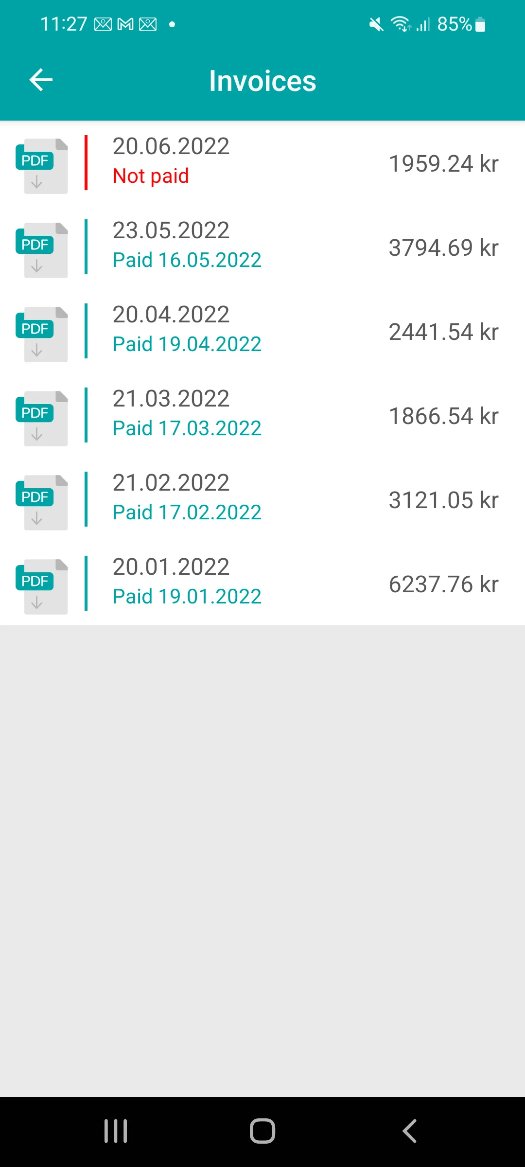 Finally, the user can check their invoice listing.
